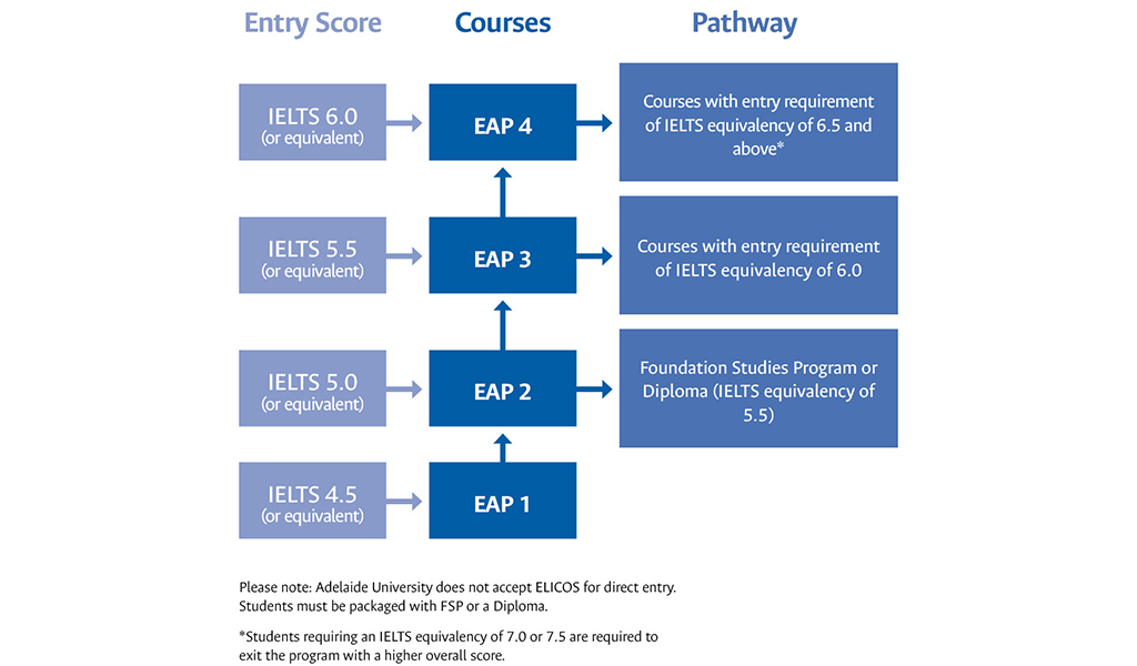 Each ELICOS level is delivered over two 5-week modules, requiring a total of 10 weeks of study per level. On successful completion of a 10-week block, students can expect to see a 0.5 improvement in their IELTS score. Assessment is based on coursework, exams, and meeting minimum attendance requirements.